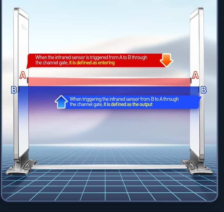 Built in two sets of infrared motion sensors, intelligently determiningthe direction and quantity of personnel entering and exiting Real time uploading and recording of data through the internet