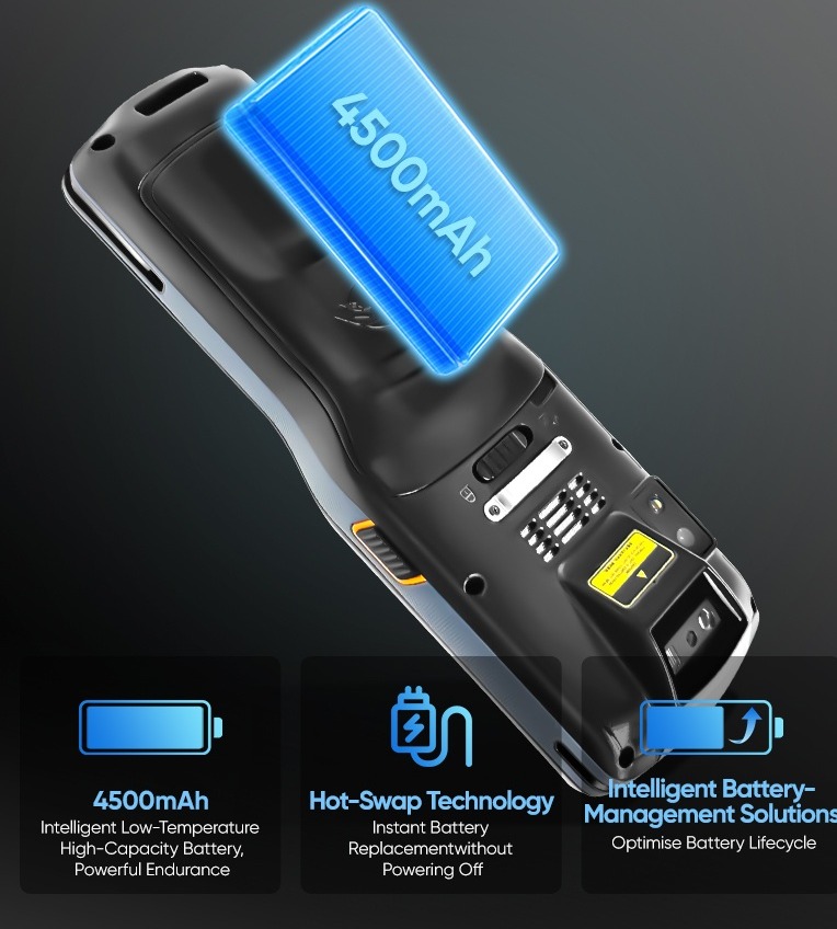 It is equipped with a 4500mAh large-capacity battery, which can meet the demand of two work shifts a day without recharging. At the same time, it is also equipped with regular cradle chargers and cable chargers, ensuring stronger work battery life. The 4500mAh battery capacity and the supporting charging methods are important guarantees for the device to maintain long-term stable operation in indoor high-intensity work scenarios, consistent with the product's focus on operational stability.