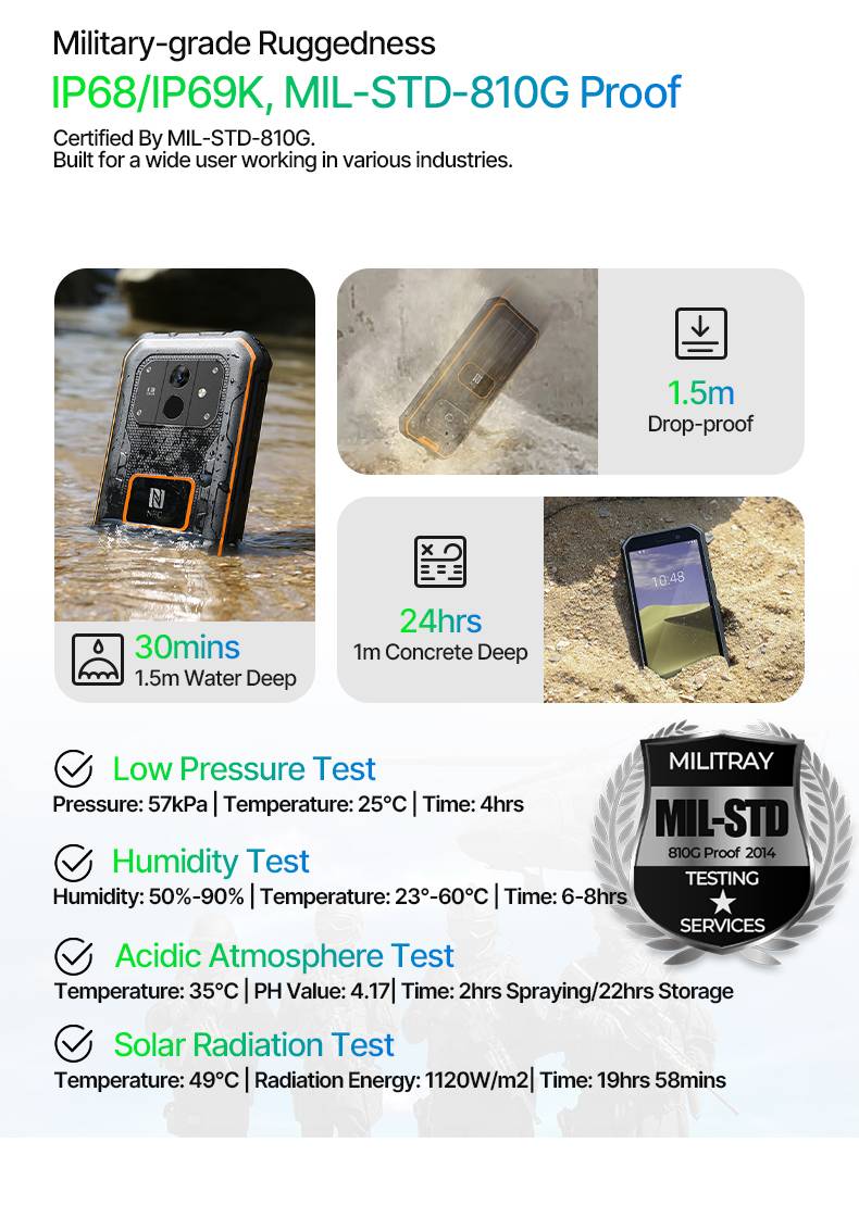 IP68/IP69K, MIL-STD-810G Proof