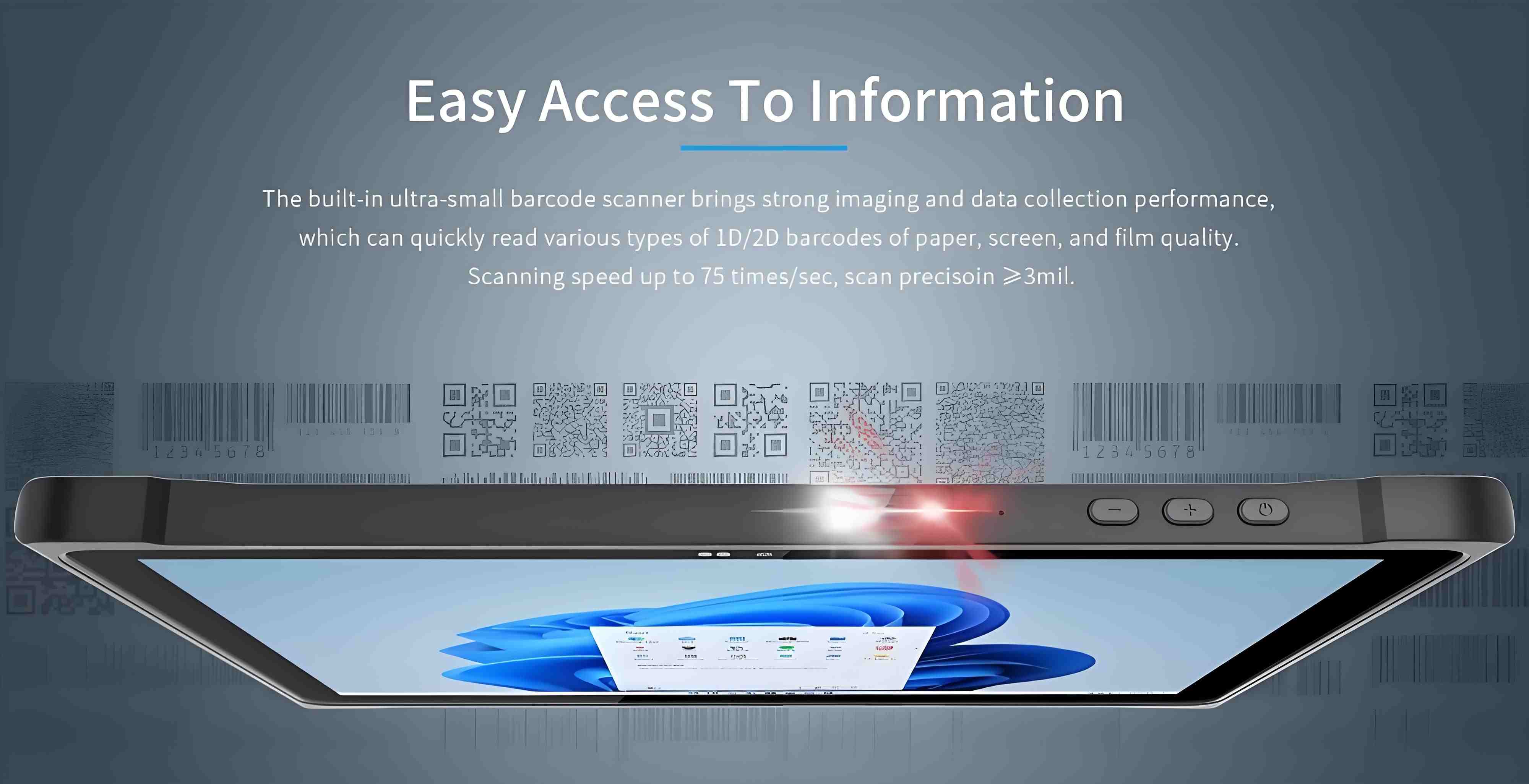 The built-in ultra-small barcode scanner brings strong imaging and data collection performance,which can quickly read various types of 1D/2D barcodes of paper,screen, and film quality.Scanning speed up to 75 times/sec, scan precisoin 3mil.