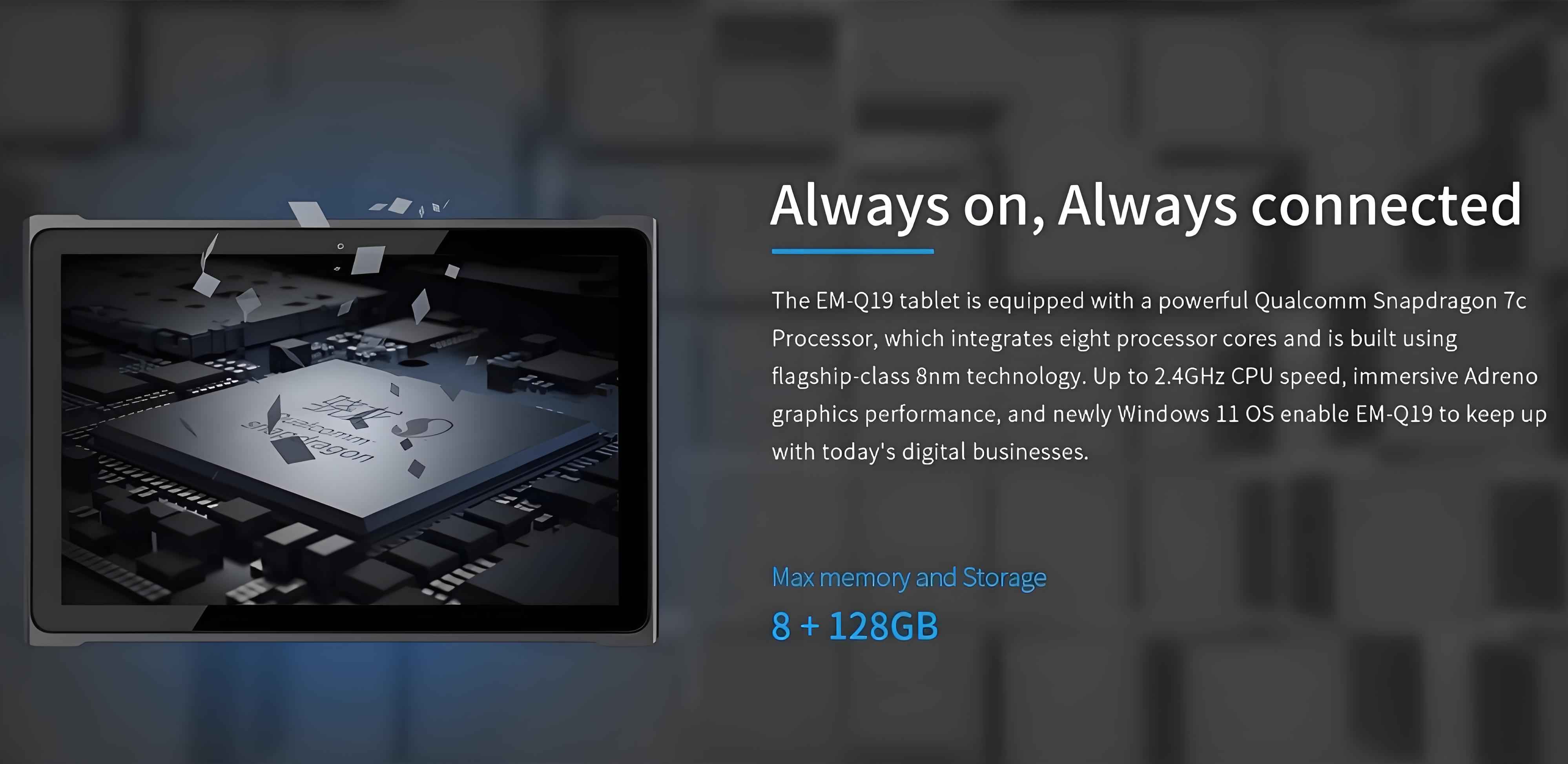 High-Performance: 8-core Snapdragon 7c chip (2.4GHz, 8nm) + 8GB RAM + 128GB storage for fast app launches and data processing.