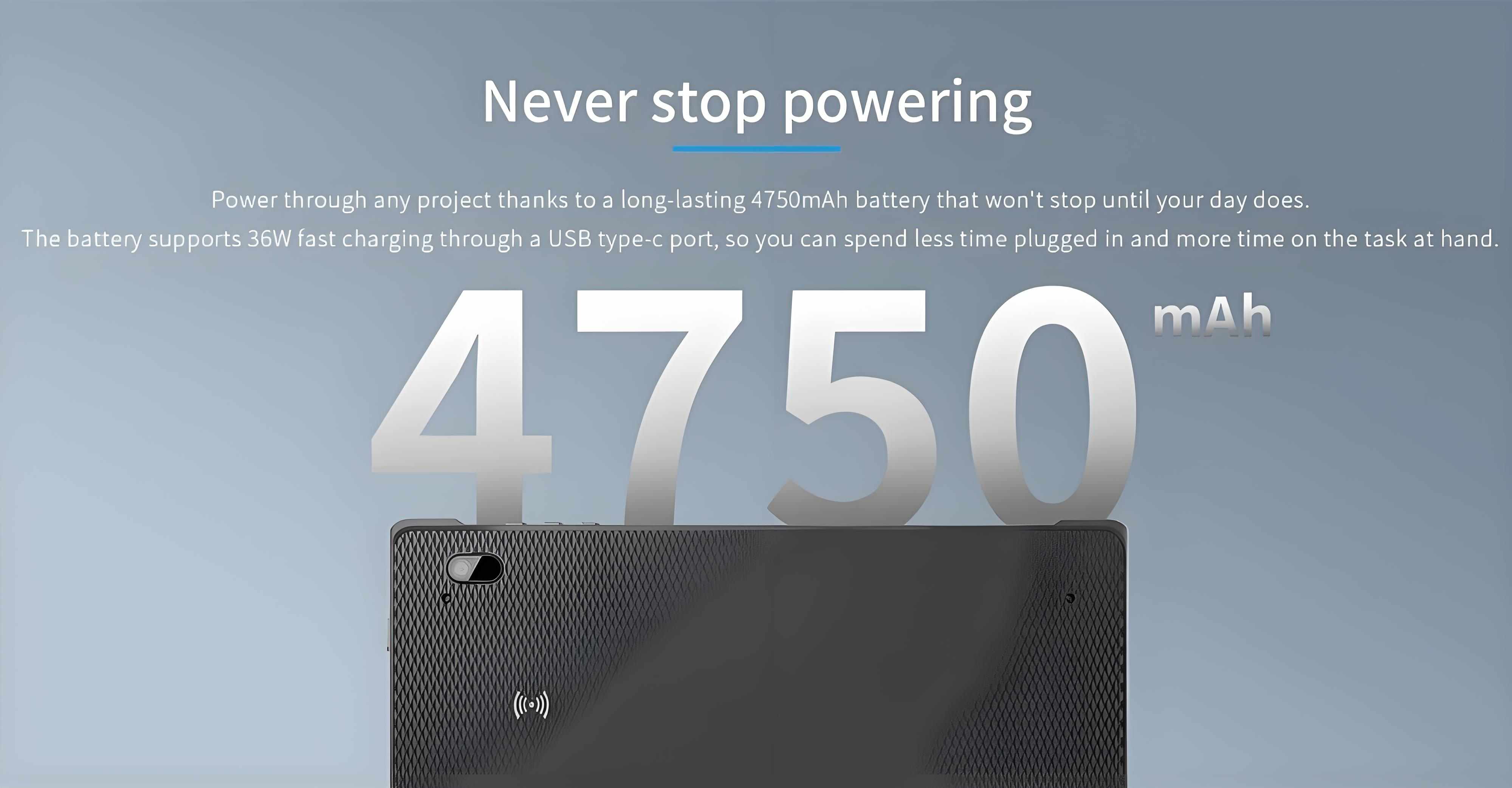 The battery supports 36W fast charging through a USB type-c port, so you can spend lesstime plugged in and more time on the task at hand.