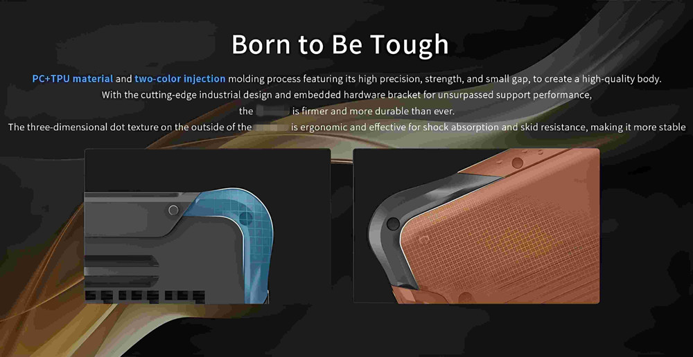 PC+ TPU material and two-color injection molding process featuring its high precision, strength, and small gap, to create a high-quality body.With the cutting-edge industrial design and embedded hardware bracket for unsurpassed support performance,firmer and more durable than ever.