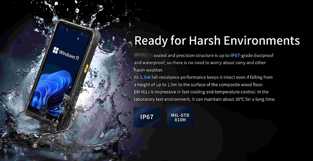 Sealed and precision structure is up to IP67-grade dustproof and waterproof, so there is no need to worry about rainy and other harsh weather.Its 1.5m fall-resistance performance keeps it intact even if falling from a height of up to 1.5m to the surface of the composite wood floor.This PDA scanner is impressive in fast cooling and temperature control. In the laboratory test environment, it can maintain about 30C for a long time.